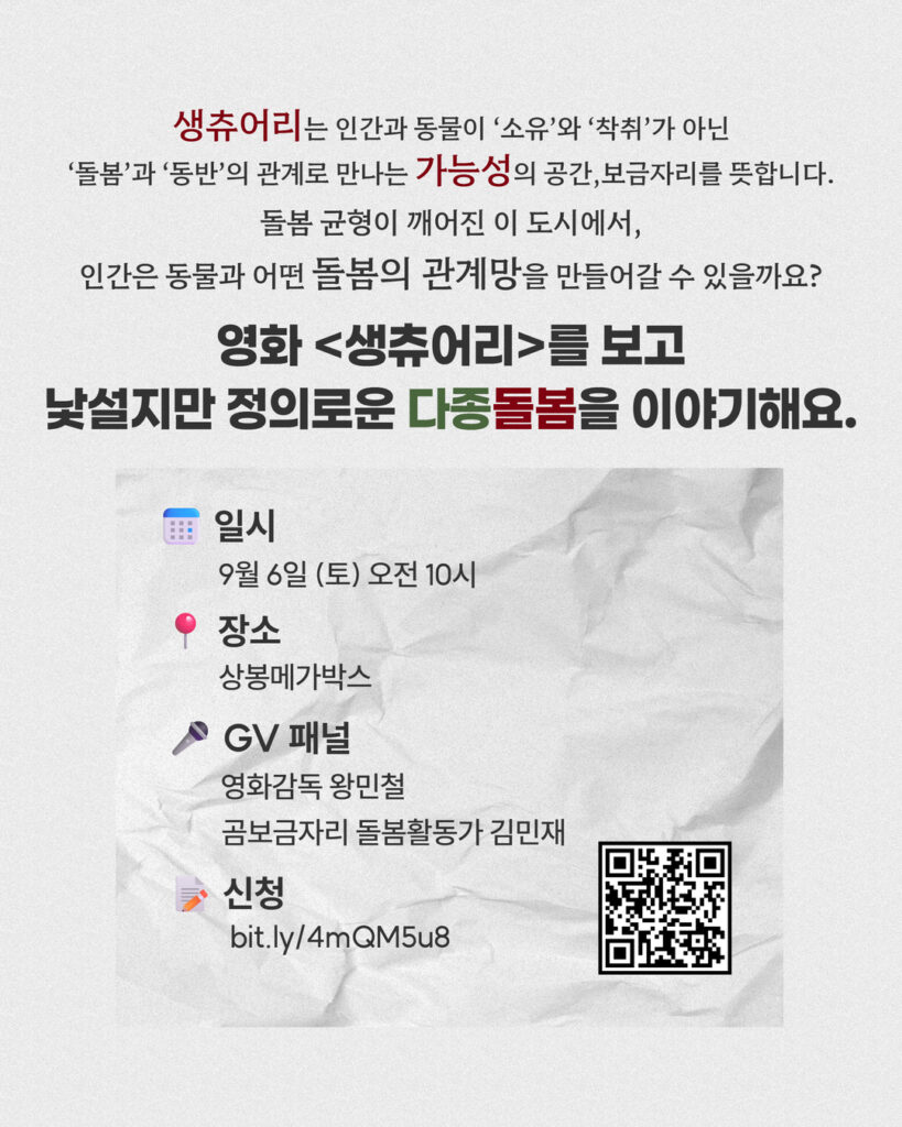 영화 <생츄어리>는 돌봄의 균형이 무너진 도시 속에서, 야생동물과 인간이 새로운 상호의존 관계망을 만들어 가는 여정을 담아냅니다.