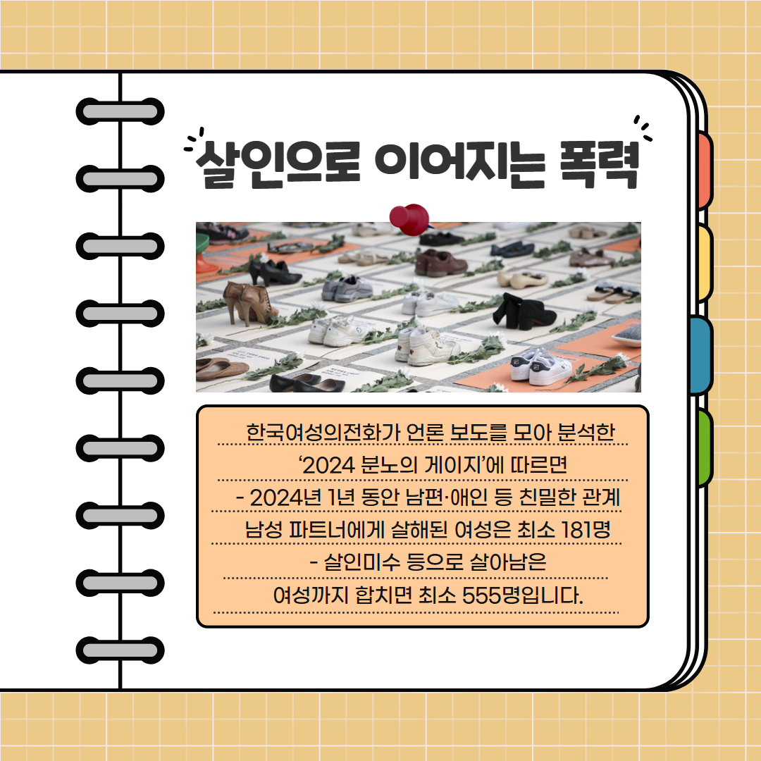 - 2024년 1년 동안 남편·애인 등 친밀한 관계 남성 파트너에게 살해된 여성은 최소 181명,