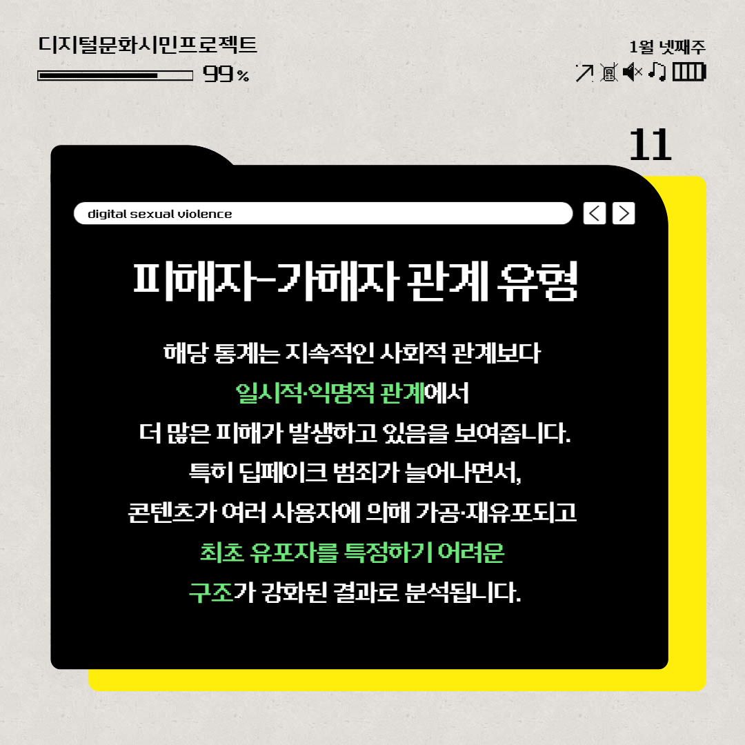 이러한 정보 누락은 가해 양상을 정확히 파악하기 어렵게 만들고, 디지털성폭력을 젠더화된 사회적 문제로 분석하는 데 한계를 남깁니다.