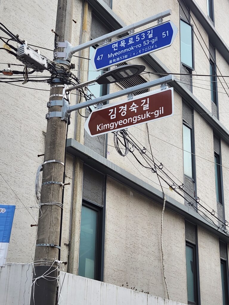 녹색병원으로 가는 길, 김경숙 열사를 기리는 김경숙로가 있습니다. 그 길을 걸으며 삼삼오오 이야기꽃을 피우며 그 길을 걷습니다.