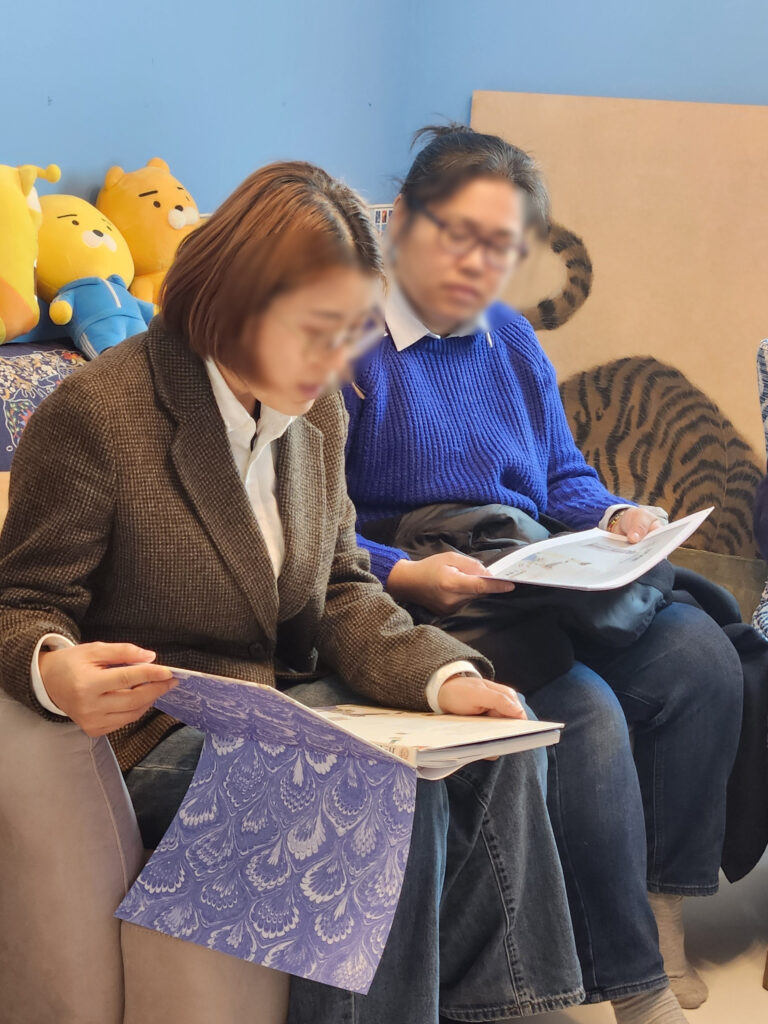 참여자 중 한 분은 그림책을 읽고 난 뒤 익숙한 문화와 관습에서 벗어나기 어려운 나의 주저함이 우리 사회 성평등의 걸림돌이 되는 것 같다는 고민을 남겨 주시기도 했습니다. 지난 탄핵 광장에서 민주주의를 위해 응원봉을 들었던 여성들이 생각난다는 분, 책 속의 인물을 보며 오늘 우리가 만날 김경숙 열사와 장이정수 활동가가 오버랩되었다는 분도 있었습니다. 내가 당장 그 혜택을 누리지는 못하더라도 더 나은 미래를 위해 기꺼이 자신을 희생한 분들 덕분에 오늘 우리가 누리는 많은 것들에 대해 다시 한번 생각해 보는 시간이었습니다.