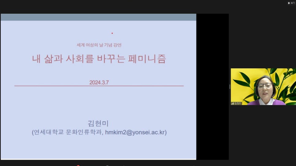 ‘내 삶과 사회를 바꾸는 페미니즘’이라는 주제의 온라인 강의였습니다.