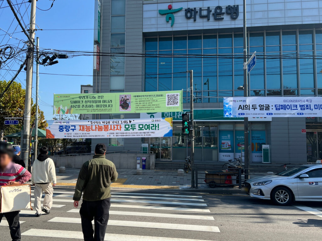 디지털 성폭력 없는 중랑 마을을 위해 던지는 힘찬 메시지! 보기만 해도 든든해지는 것 같네요. ‘세계 여성 폭력 추방의 날’인 오늘! 거리에서 이 현수막들을 찾아보며 이날을 함께