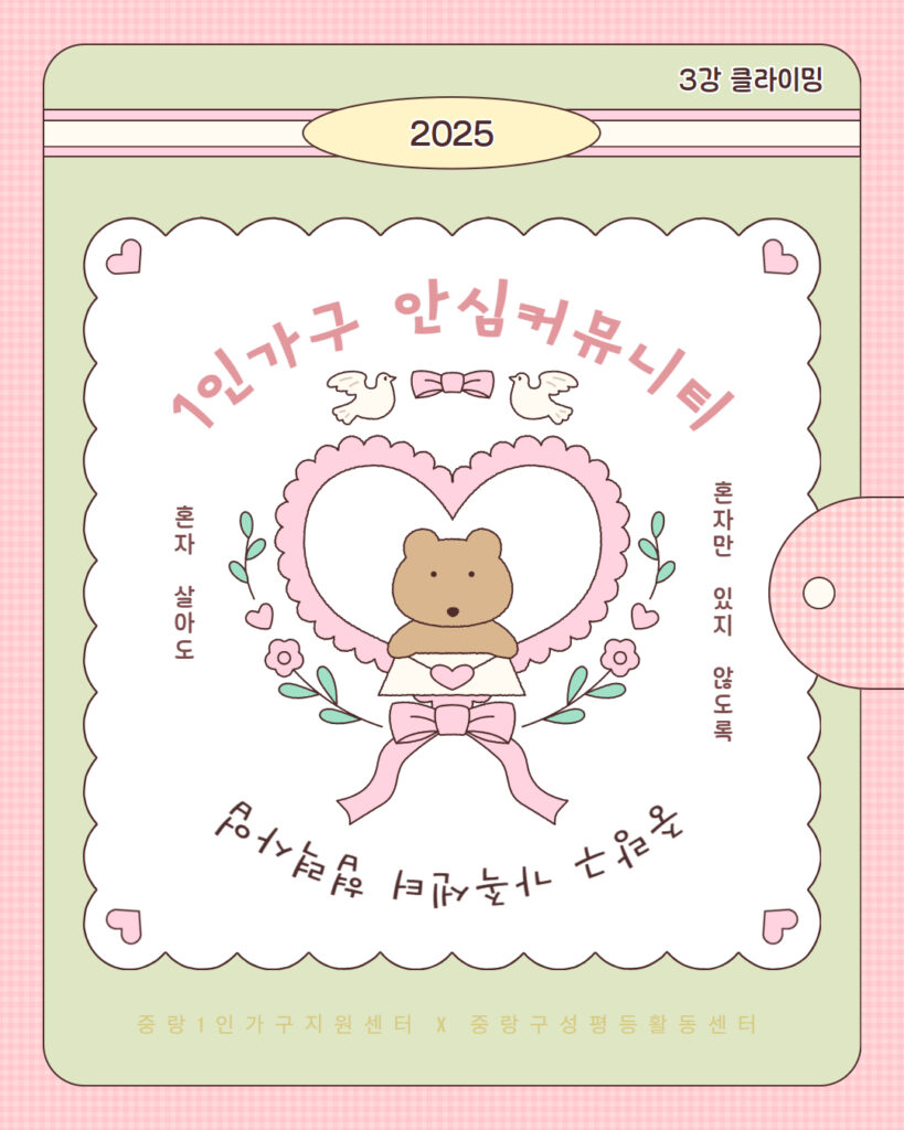 2024년에 이어 올해도 중랑구 가족센터와 함께하는 1인가구 대상 프로젝트가 진행되고 있습니다. 총 5회차로 마련된 1인가구 안심 커뮤니티 프로그램은 중랑구에 거주하는 1인가구 참여자들이 건강한 네트워크를 만들고, 스스로를 돌보며 함께 돌보는 관계망을 만들어가는 것을 목표로 하고 있습니다. 세 번째 시간인 8월 27일에는 특별히 클라이밍 체험이 준비되었습니다.