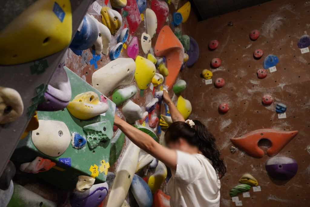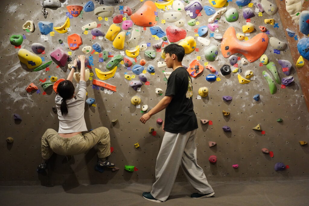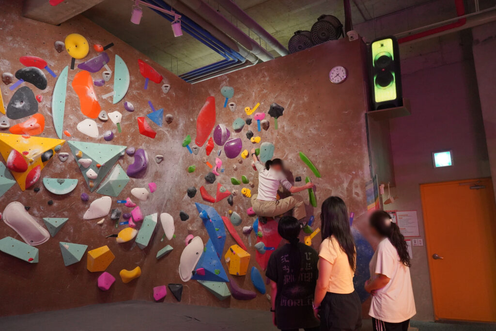첫 시작은 ‘지구력벽’이라 불리는 긴 암벽 앞에서 기본 동작을 배우는 시간이었습니다. 강사님이 가장 강조한 것은 바로 ‘삼각형 자세’. 어떤 상황에서도 무게가 안정적으로 실릴 수 있도록 삼각형을 유지하는 것이 핵심이라고 하셨습니다. 위로 오르기 전에 옆으로 이동하는 법부터 연습했는데요. 발을 디딜 곳을 찾으며 한 걸음씩 나아가는 과정이 조금은 두렵기도 했지만, 동시에 나만의 중심을 찾아가는 시간이기도 했습니다.